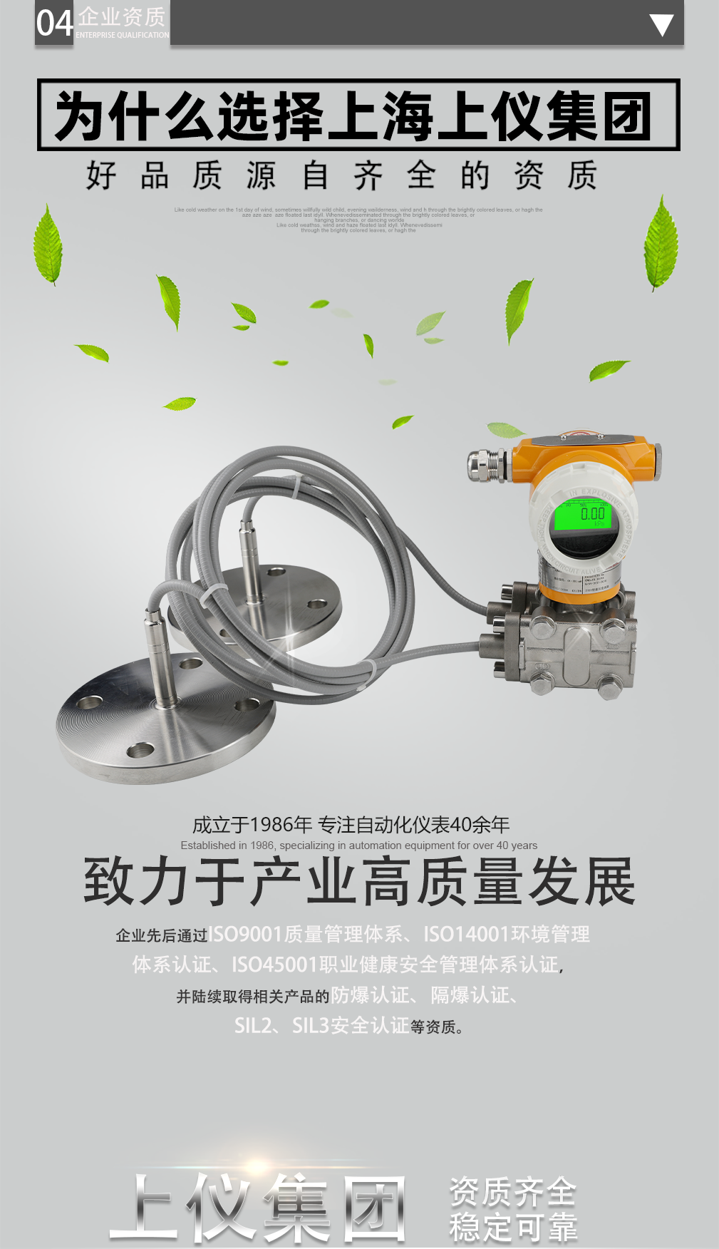 上儀集團(tuán)專注于各類上儀壓力變送器,差壓變送器,單雙法蘭液位變送器等。